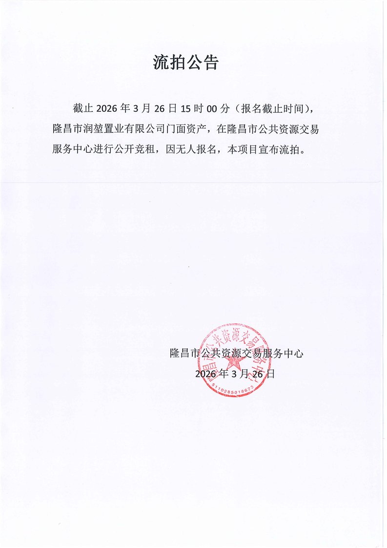 LCJY(2026)C025隆昌市润堃置业有限公司门面租赁流拍公告