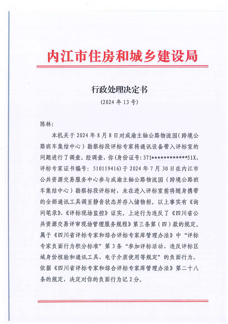 行政处理决定书(陈林)