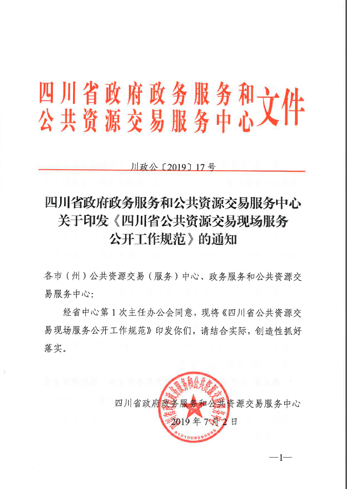 关于印发《四川省公共资源交易现场服务公开工作规范》的通知