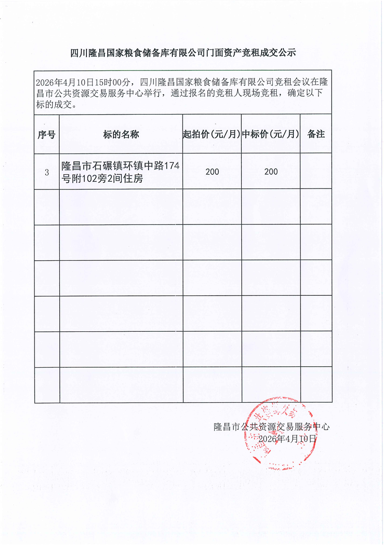 LCJY(2026)C032四川隆昌国家粮食储备库有限公司门面竞租成交公告